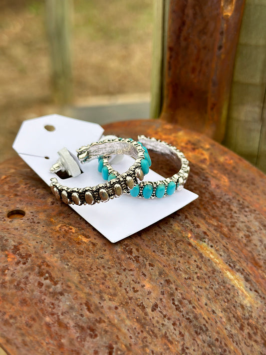 Western Mini Flower Stud Earrings Turquoise+Copper